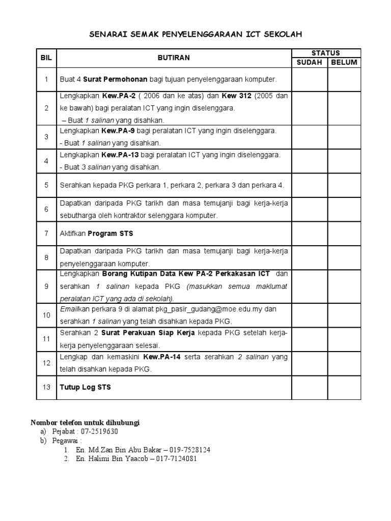 1 Senarai Semak Penyelenggaraan Ict Sekolah