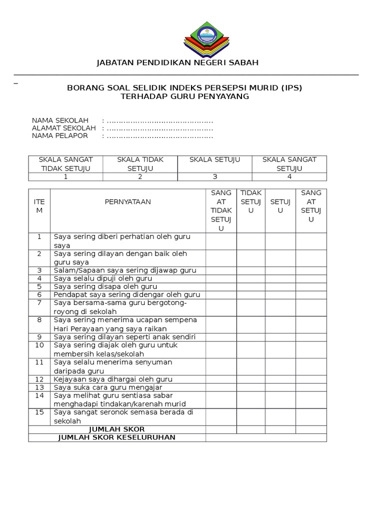Borang Soal Selidik Indeks Persepsi Murid