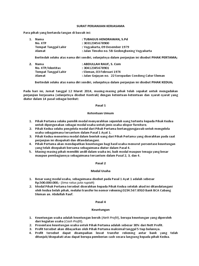 Contoh Surat Perjanjian Kerjasama Bagi Hasil Contoh Surat