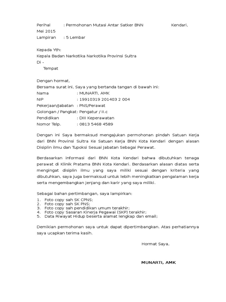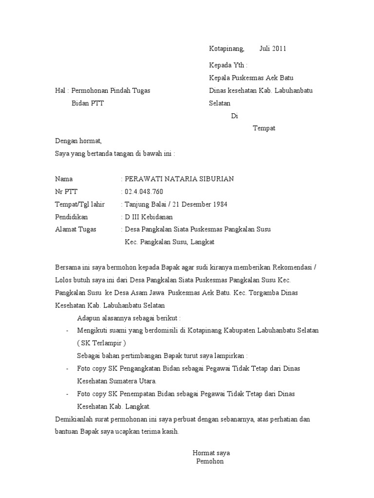 Surat Permohonan Pindah Unit Kerja Pns Doc Kumpulan Surat Penting