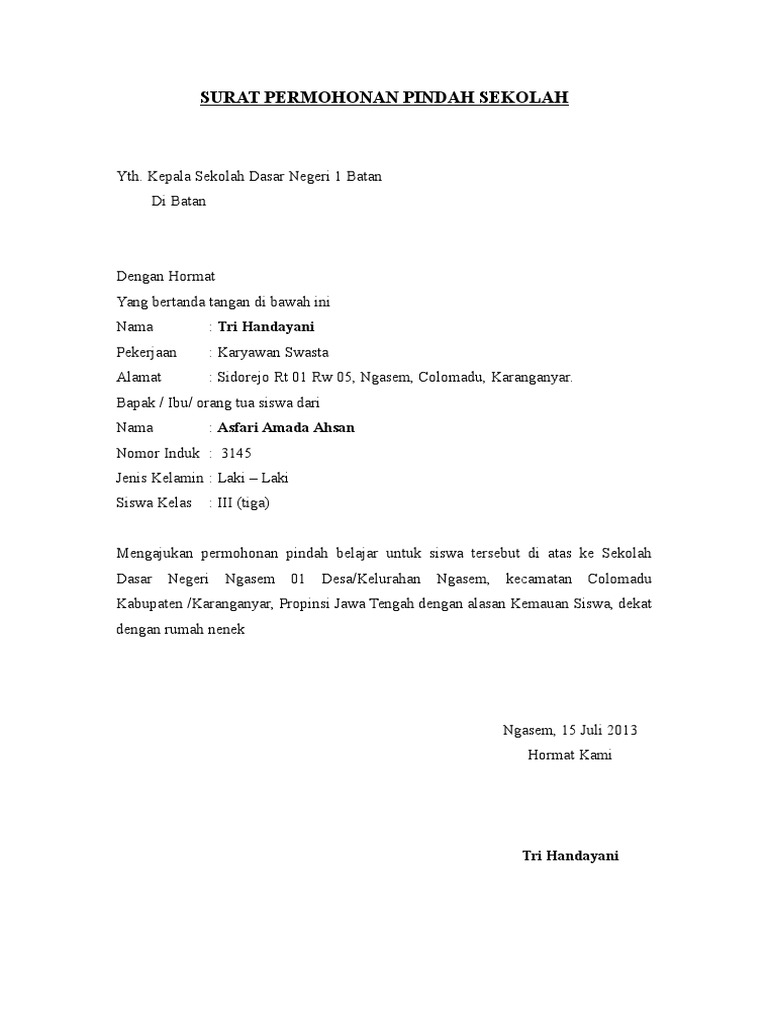 Surat Permohonan Mutasi Kerja Karyawan Swasta Contoh Seputar Surat