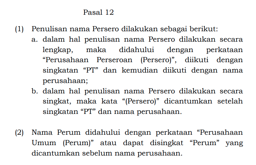 Ivan Lanin V Twitter Penulisan Singkatan Pt Nama Persero Dan Singkatan Tbk Diatur Dalam Pp 45 2005 Pp 43 2011 Dan Permendikbud 50 2015 Contoh Penulisan Yang Benar Pt Garuda Indonesia Persero Tbk