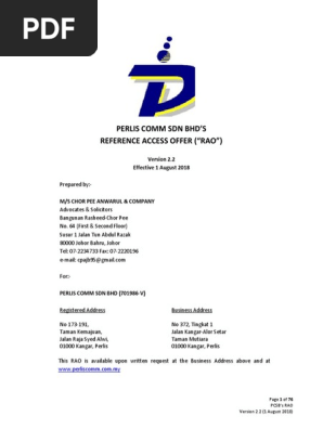 Perlis Comm Sdn Bhd S Reference Access Offer Rao V2 2 1 August 2018 Invoice License