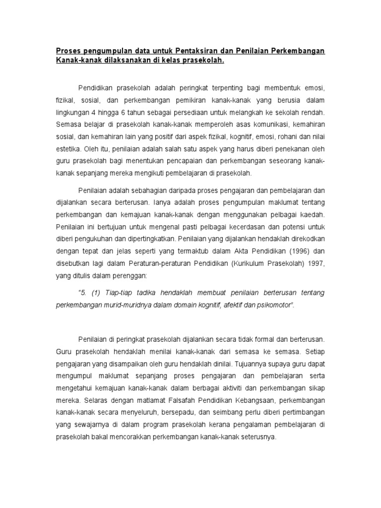Pentaksiran Prasekolah Pdf Document