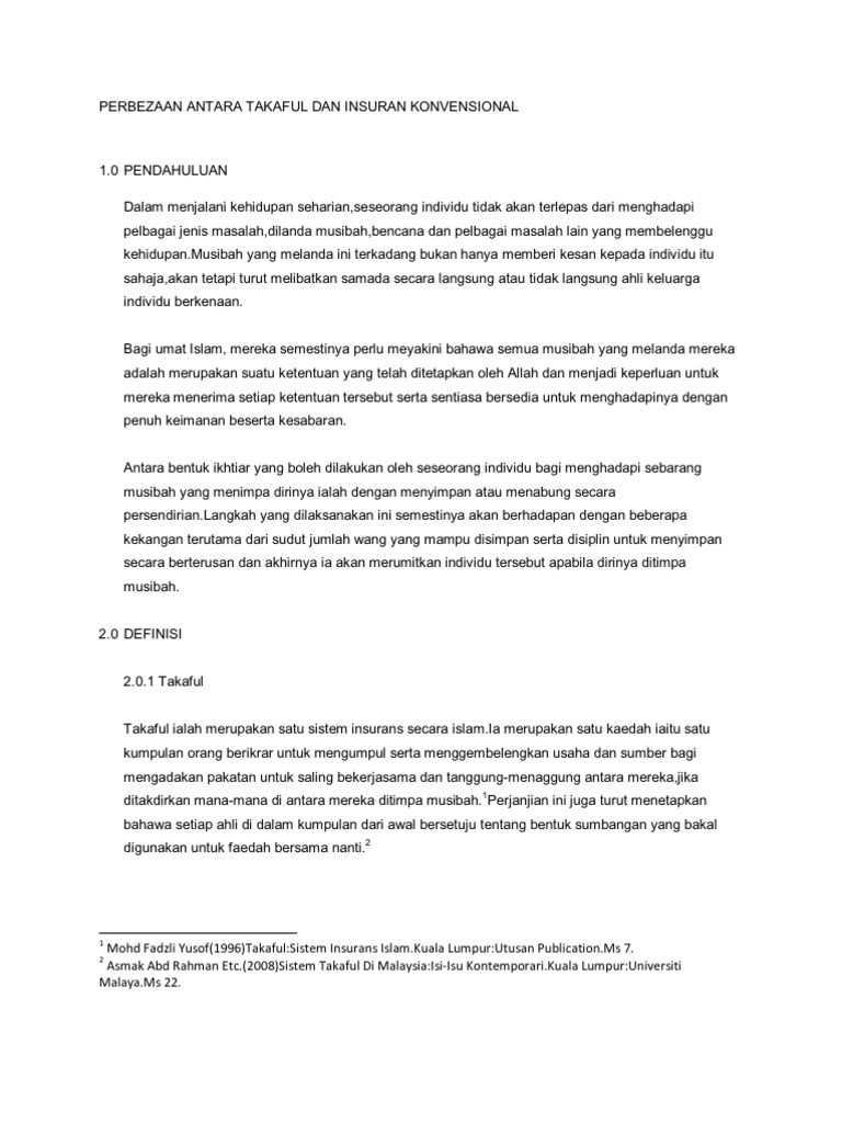 Perbezaan Antara Takaful Dan Insuran Konvensional Pdf Document
