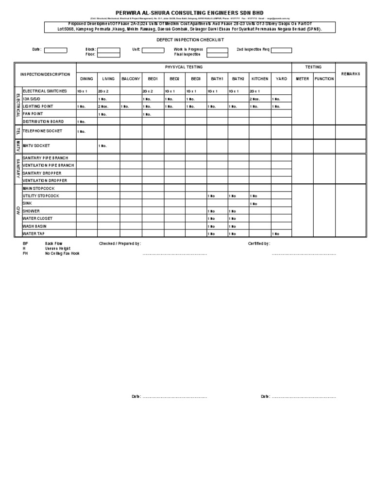 Perwira Al Shura Consulting Engineers Sdn Bhd Defect Inspection Checklist Home Building Engineering