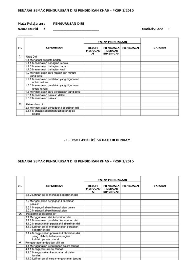 Senarai Semak Pengurusan Diri Pendidikan Khas